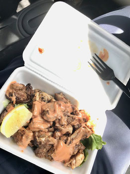 人気No.1のランチボックス、辛くない「ジャークチキン」です。