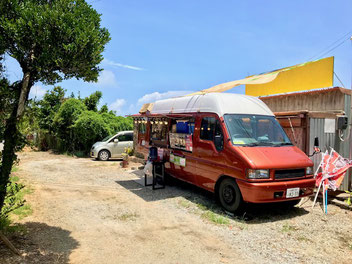 中城村を走る国道329号沿いで、偶然見つけたキッチンカーです。