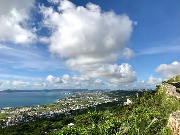 眺望はとても素晴らしく、東側には中城湾や太平洋が望めます。